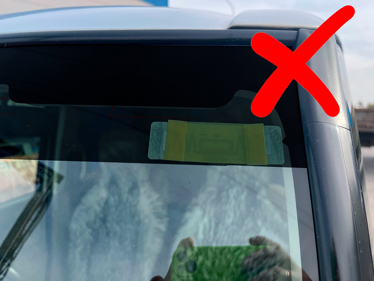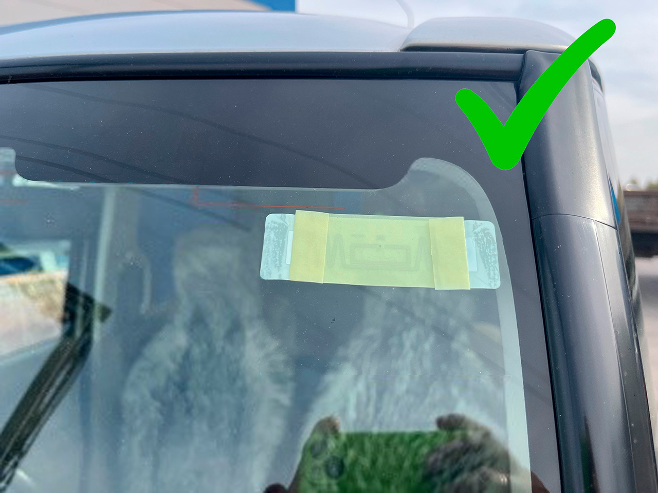 RFID метка для корректной работы устанавливается на лобовом стекле ТС со стороны салона